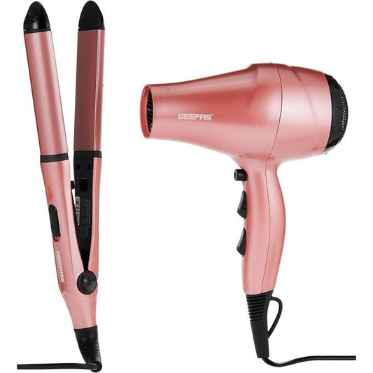 Geepas 4 In 1 Hair Dressing Set 2000W Portable Hair Dryer, Straightener, Curler with Eva Bag Ideal for Styling All Hairs- Multi
