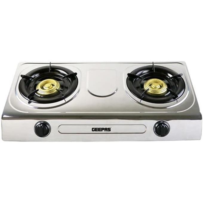 Geepas 2-Burner Gas Stove with Auto Ignition Stainless Steel Body